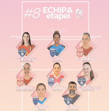 Extremă: Rodica Buterez (CSO Voluntari). Debutantă în echipa etapei, Rodica a fost principala realizatoare la Târgoviște: 19 puncte (+16). A avut 46% procentaj de reușită în atac. Adversarele au servit mult pe ea, fiind ceva probleme cu preluarea: 37% recepție pozitivă și 17% recepție excelentă.