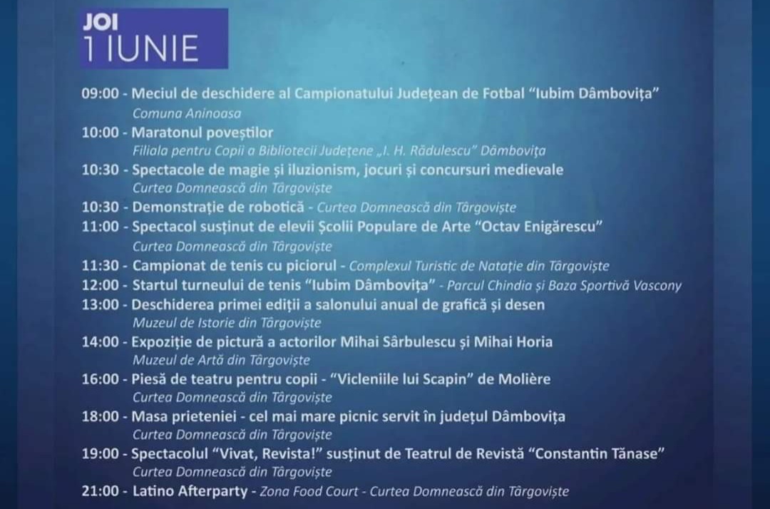 programul pentru ziua de 1 iunie 2023. Zilele județului Dâmbovița